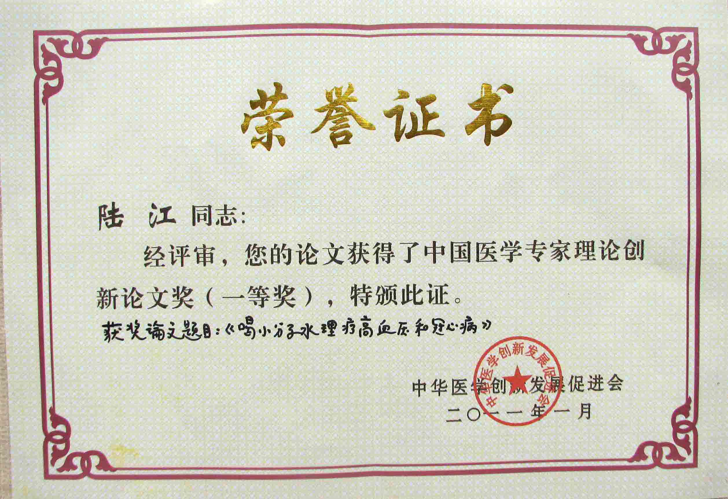 人類幾千年來患以上病癥需終生服藥,幾十年也不能治愈。可是我國南寧的高級工程師陸 江,于1990年想根治高血壓,研究發(fā)明了離子水瓶,處理出微小分子團(tuán)水供飲用,經(jīng)過醫(yī)院臨床試用和專家鑒定,1999年獲中國發(fā)明專利權(quán),產(chǎn)品于2000年投放市場后一直跟蹤調(diào)查,據(jù)全國各地用戶反饋:祛除了高低血壓、糖尿病和冠心病,并使前列腺增生、咽喉炎、鼻竇炎、慢性氣管炎、支氣管炎、矽肺病、哮喘、慢性胃炎、腸炎、慢性膽囊炎、慢性腎炎、腎衰、膀胱炎、便秘、痔瘡、風(fēng)濕性關(guān)節(jié)炎和濕疹皮炎及中風(fēng)后遺癥等病癥不藥而愈。為什么喝微小水能治20多種病?陸 江從1991年德國科學(xué)家發(fā)現(xiàn)細(xì)胞膜水通道僅為2納米獲得啟發(fā),認(rèn)為多種器官患病是因細(xì)胞脫水,不能正常代謝和分裂增殖,才使器官細(xì)胞減少致衰弱萎縮而形成細(xì)胞缺水性病癥。22年來的實踐有力地支持了“細(xì)胞脫水致病”這一重要論點,表明喝微小水可滿足細(xì)胞的生理需求,補(bǔ)水就能祛病,是生命科學(xué)新亮點。